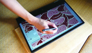 手捺染の色調整は製造部の調合担当が行いますが、インクジェットや昇華転写などデータ上で数値を変更できるプリントの色調整については企画部が担当します。